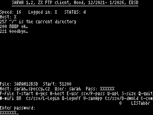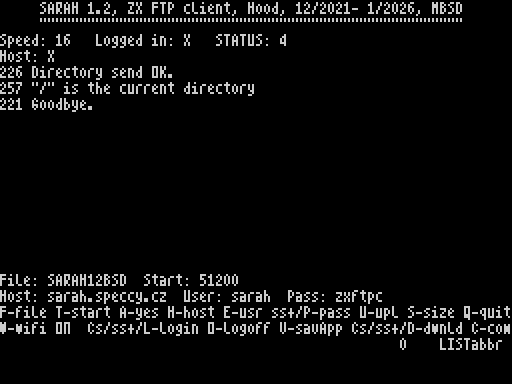 | - line 4 | Host: shows URL of your ftp server, or X if not connected